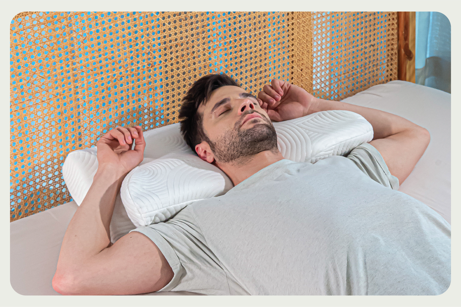 Tailored support for head, cervical vertebrae, and shoulders. The Dream Wings Pillow perfectly aligns neck, and eases shoulder tension.